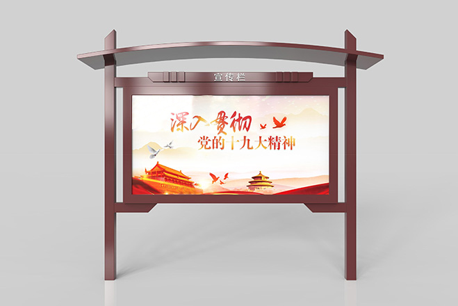 宣傳欄是一種VI應用,是組織或企業單位等進行自我宣傳的有效手段,常被應用于街道,工廠等公共場所;一般采用不銹鋼為框架,鋼化玻璃或者耐力板為面板,鋁合金為頂棚,面板可以打開更換宣傳畫面。現如今,宣傳欄廣泛應用于學校、小區、會議館、展廳等各個場地。